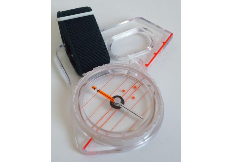 Estas bússolas são para o esporte Orientação(Orienteering) o atleta (orientista) insere no polegar direito ou esquerdo para poder manusear o mapa e fazer a leitura do ângulo(azimute). O seu elástico permite que o mesmo corra com o mapa sempre orientado na direção do trajeto com alinhamento do norte magnético. Sim isso mesmo, os mapas de orientação tem o norte magnético como referência.